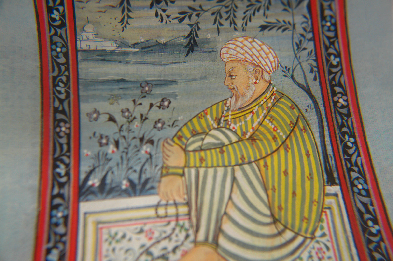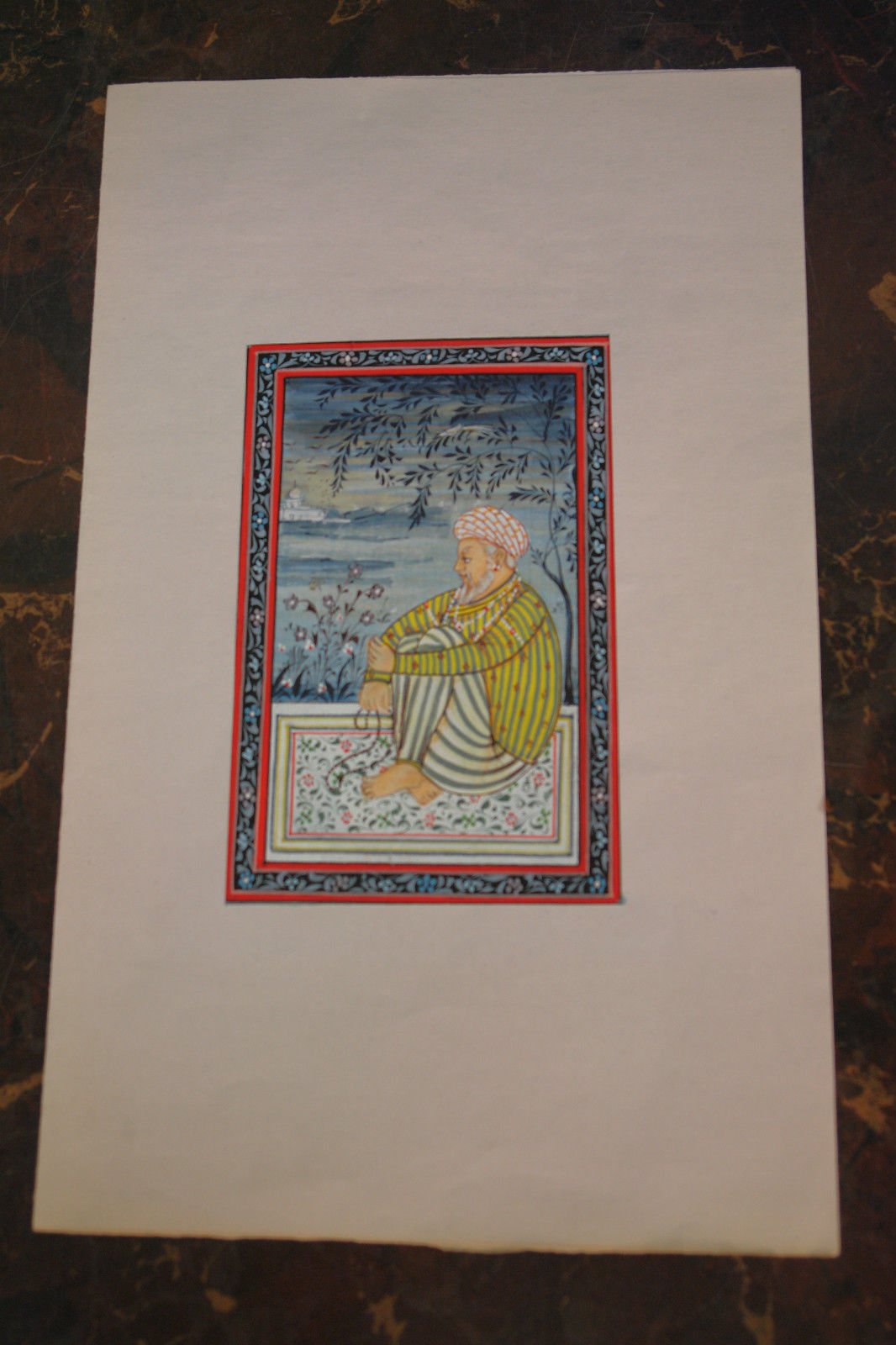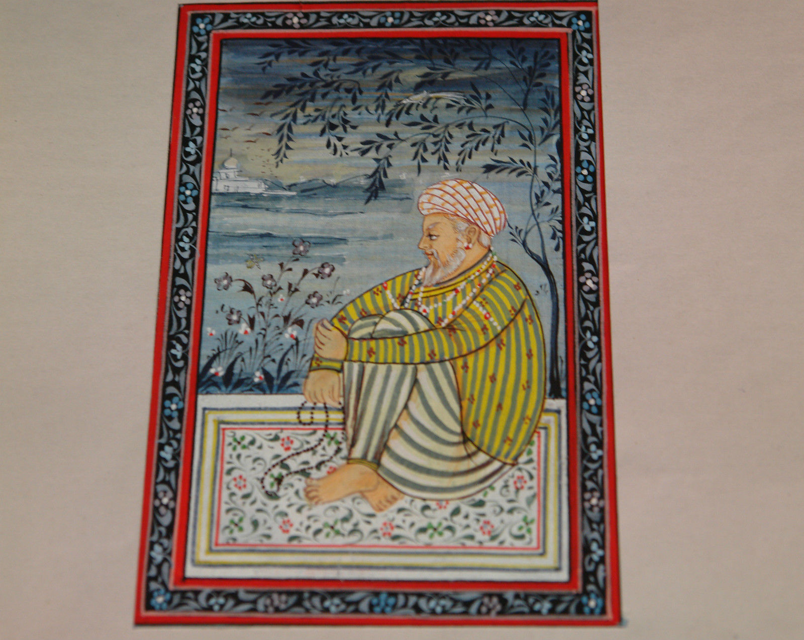 Antique Miniature Persian Hand Made Silk Painting Artwork „In Prayer“