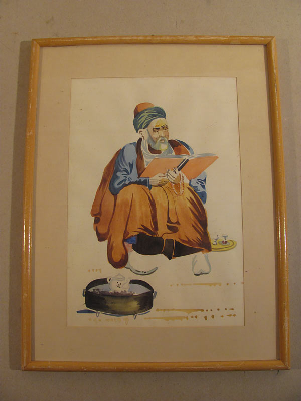 Aquarell Imam Islam um 1920 Gelehrter 36×28 cm unter Glas gerahmt