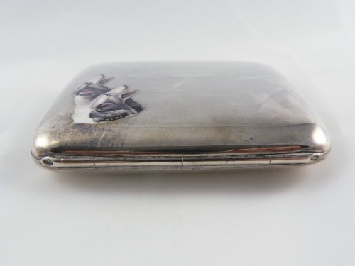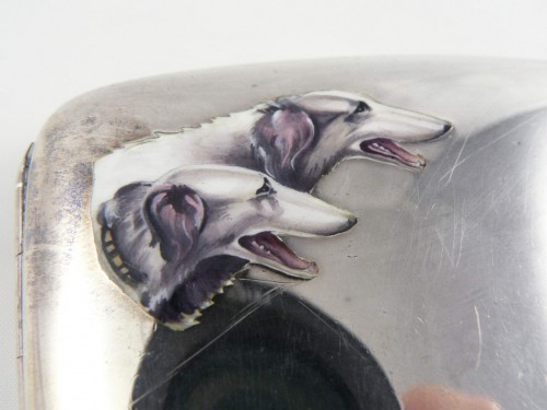 Art.1466 Jugendstil Zigarettenetui 925er SILBER Emaille-Malerei WINDHUNDE um 1900