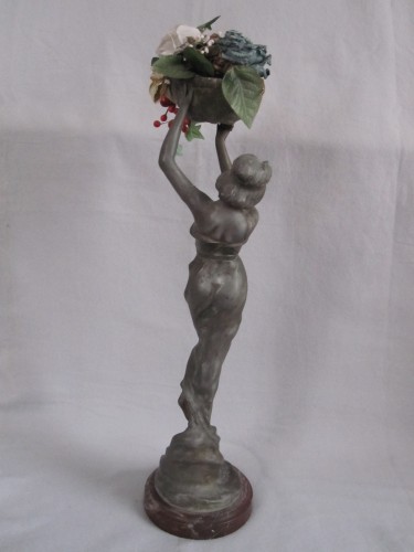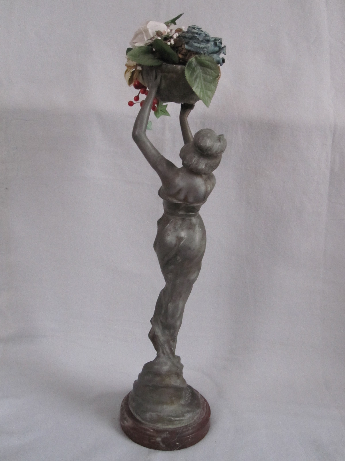 Wunderschöne Frauenfigur mit Blumenschale Guss